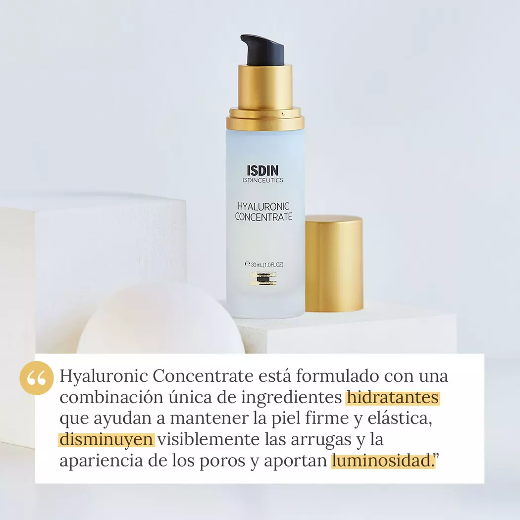 Descubre una hidratación intensa con Isdinceutics Hyaluronic Concentrate Sérum, formulado con ácido hialurónico puro de alto y bajo peso molecular que actúa en todas las capas de la piel.